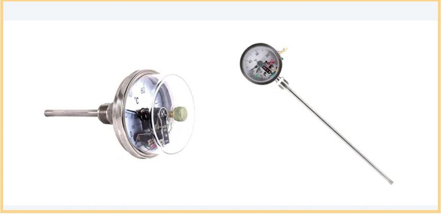 . Bimetalik elektrik temas termometresi Sıcaklık ölçümünü ve otomatik kontrol fonksiyonlarını birleştiren endüstriyel bir araçtır. BT ve sıradan bir termometre arasındaki en büyük fark, sıcaklığı göstermenin yanı sıra devreyi otomatik olarak kontrol edebilmesidir.