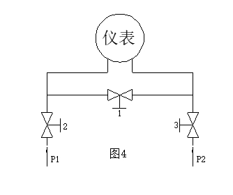4. Şekilde gösterildiği gibi 4 , Denge (güvenlik) valfi (valf 1 ) kurulum sırasında cihazın yüksek ve düşük basınçlı giriş bağlantı noktalarının önüne yerleştirilmeli ve açık konumda olmalı ve valften sonra denge vanası kapatılmalıdır. 2 and Valf 3 hepsi açıldı.