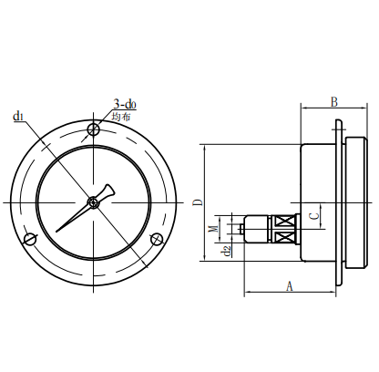 | YC100- Ⅰ | 90 | 48 | 15 | Φ 100 | / | / | Φ 6 | M20 × 1.5 |